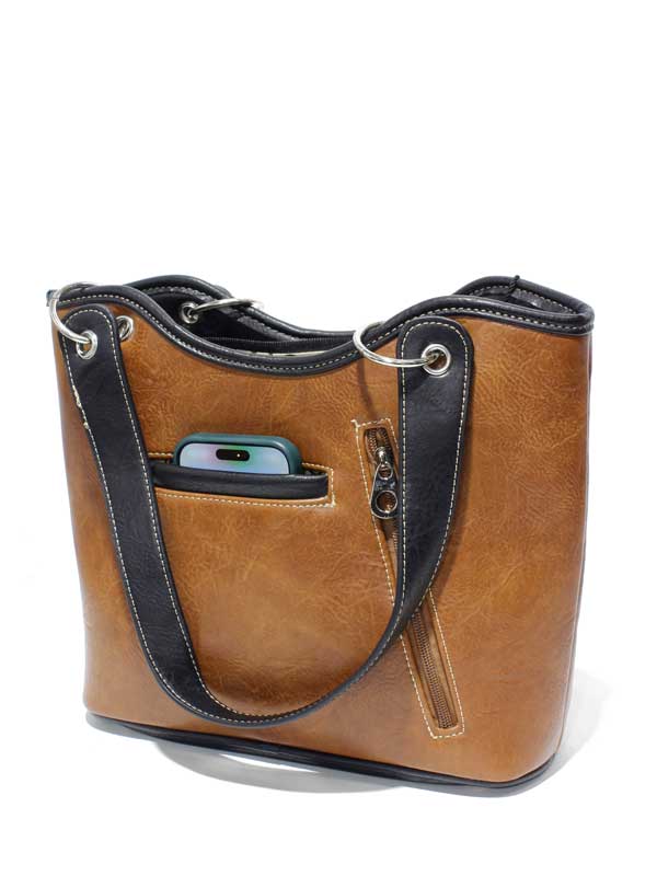 • 8055 Cindy  -Laser Cutout Design with Suede Handstitching Details Tote Bag