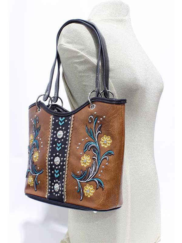 • 8058 Patricia Collection  -Laser Cutout Design with Turquoise Nailing Details Tote Bag