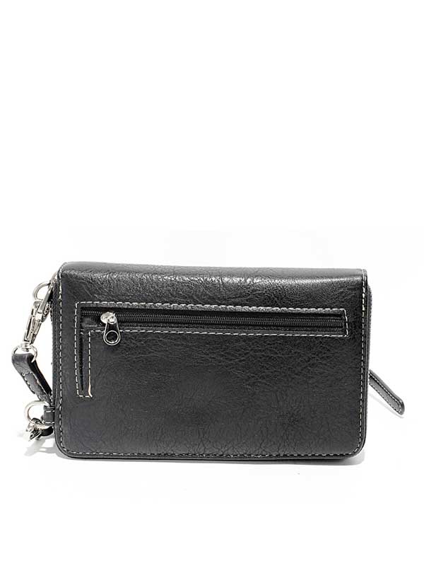 Inside: wall zipper pocket, 2 open pockets and a key fob leash